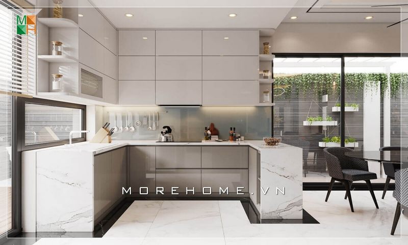 Chia sẻ một mẫu thiết kế nội thất bếp chữ U hiện đại phù hợp với các không gian như chung cư, nhà phố, biệt thự.